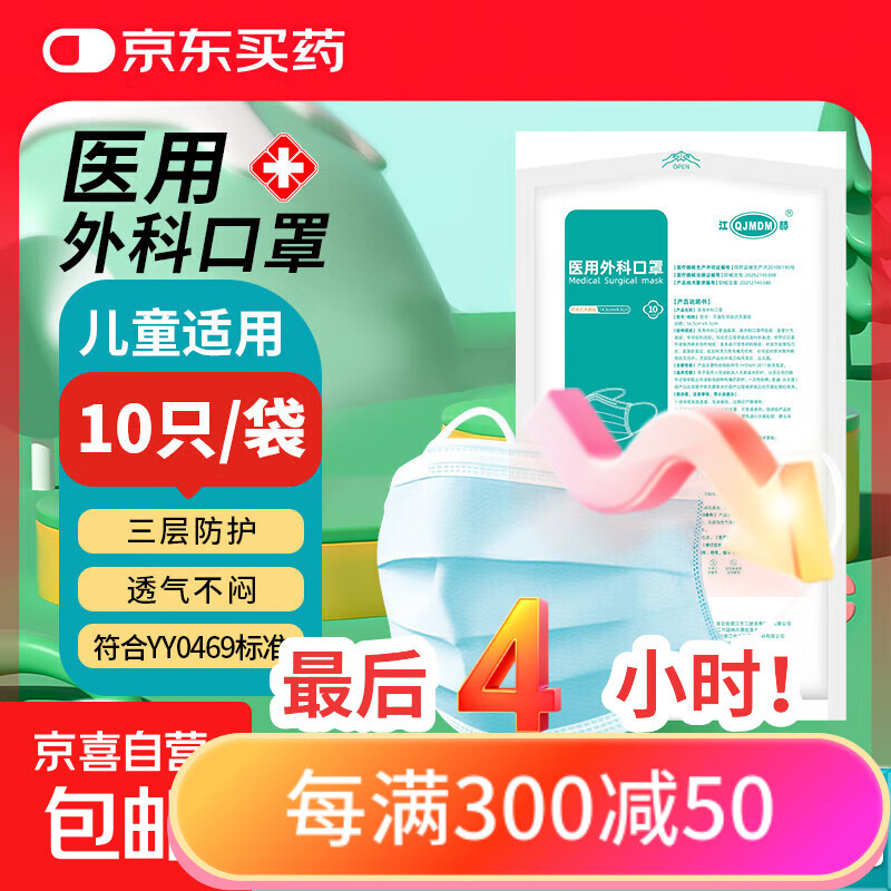 江赫儿童医用外科口罩 灭菌级独立包装防细菌防晒卡通图案舒适透 蓝色 10只 14.5*9.5cm