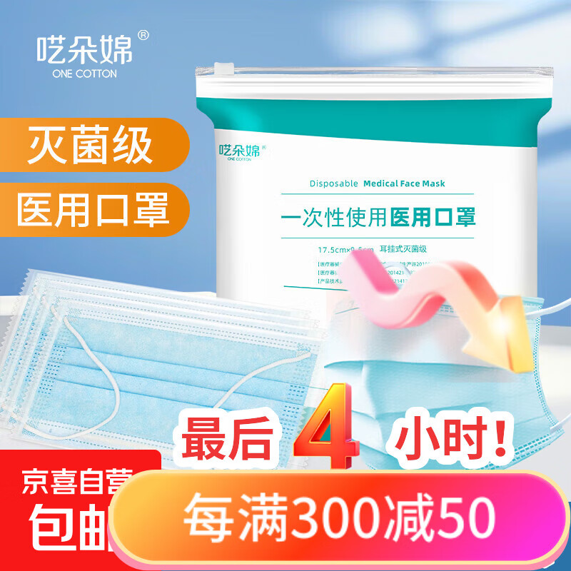 一次性医用口罩 灭菌级每只独立包装 有效阻菌三层防护防尘防晒 100只/袋 独立包装灭菌级