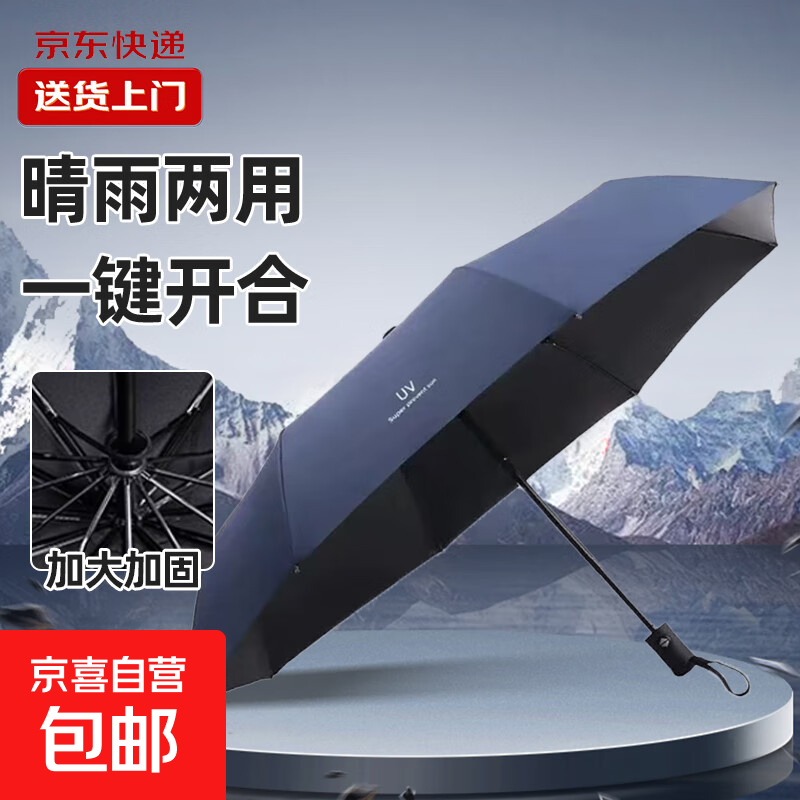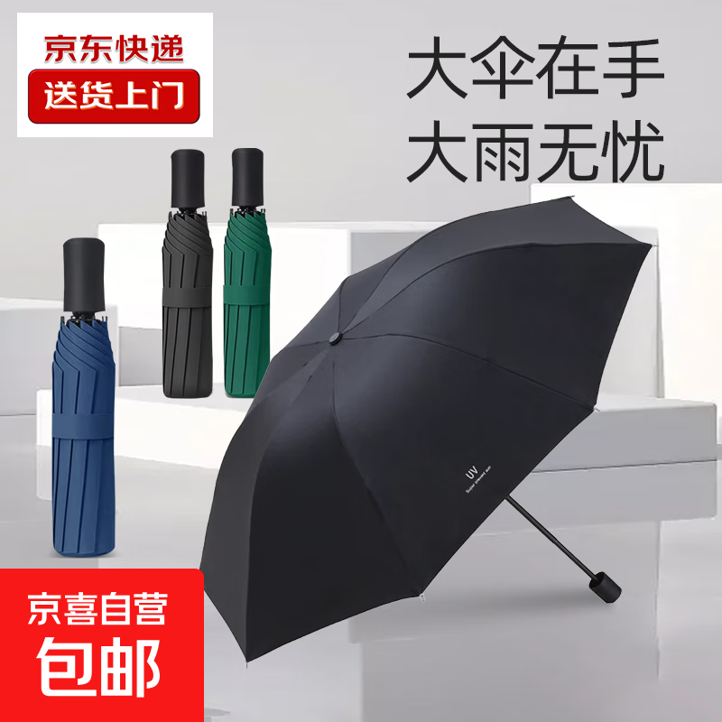 【全网爆款】手动UV折叠雨伞男女晴雨伞两用防晒遮阳黑胶伞 【自动款】藏青UV