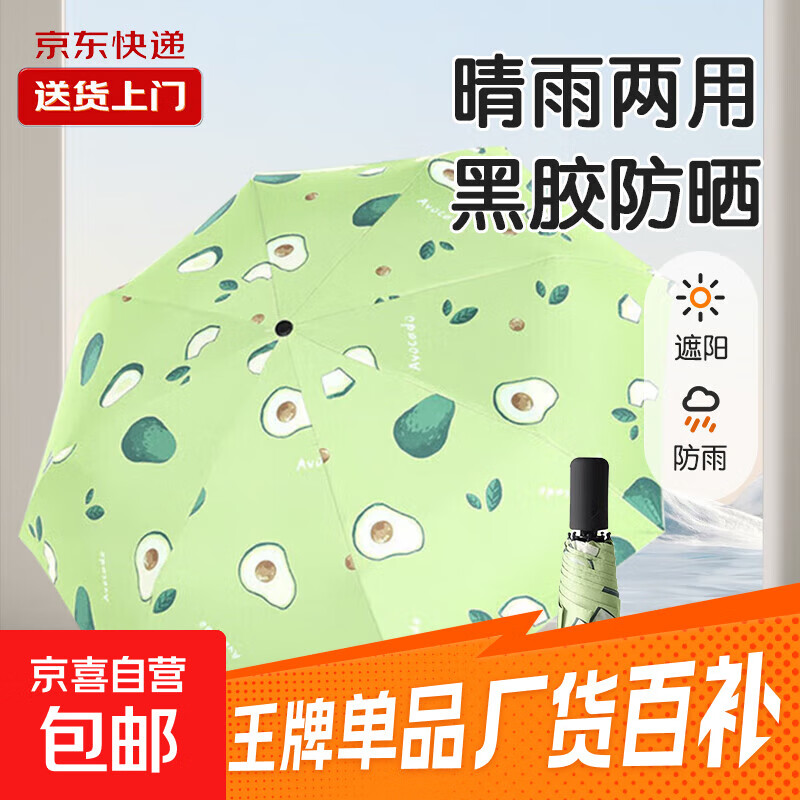 爆款雨伞水果系列8骨折叠黑胶防晒紫外线遮阳晴雨两用伞 牛油果 手动 手动开合