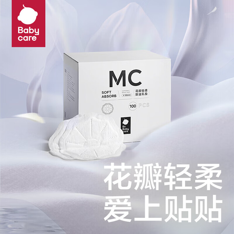 babycare防溢乳垫孕妇产后一次性防溢乳贴超薄3D贴合透气哺乳期隔奶垫 100片装 花瓣轻柔款