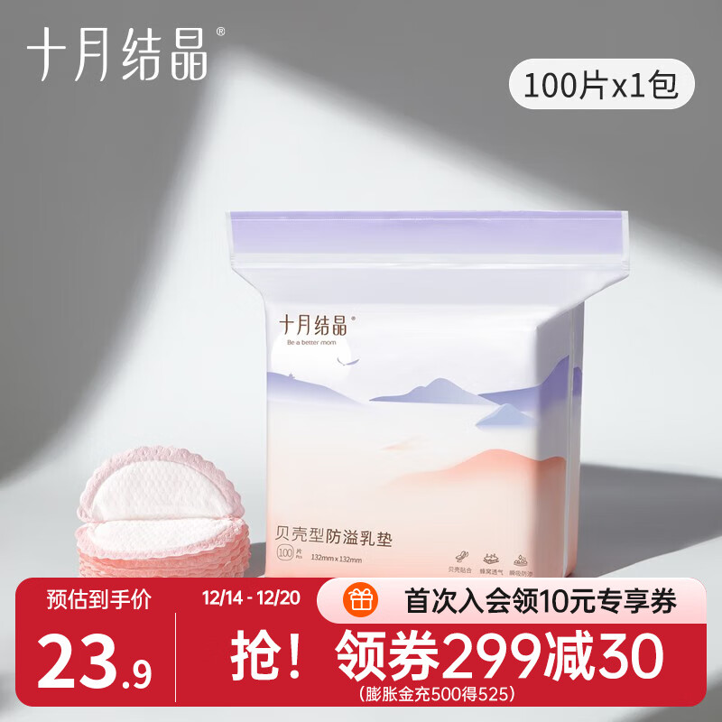 十月结晶 防溢乳垫秋冬一次性母乳垫孕妇乳贴母乳防漏贴薄款升级款 100片装 贝壳款