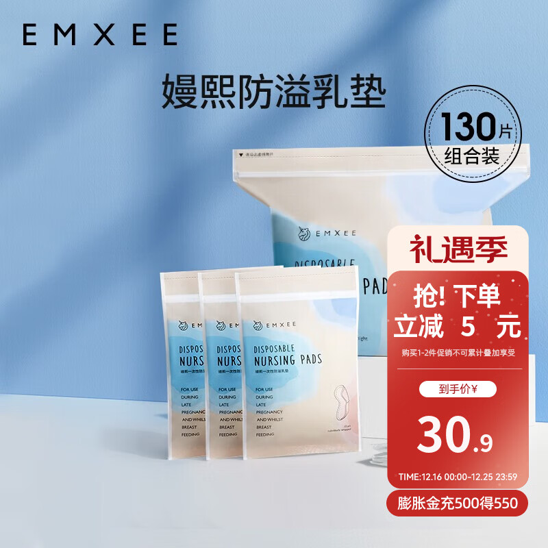嫚熙(EMXEE) 防溢乳垫孕妇产后一次性超薄舒适防漏溢乳贴隔奶垫透气 130片装 MAX强力吸收/袋装