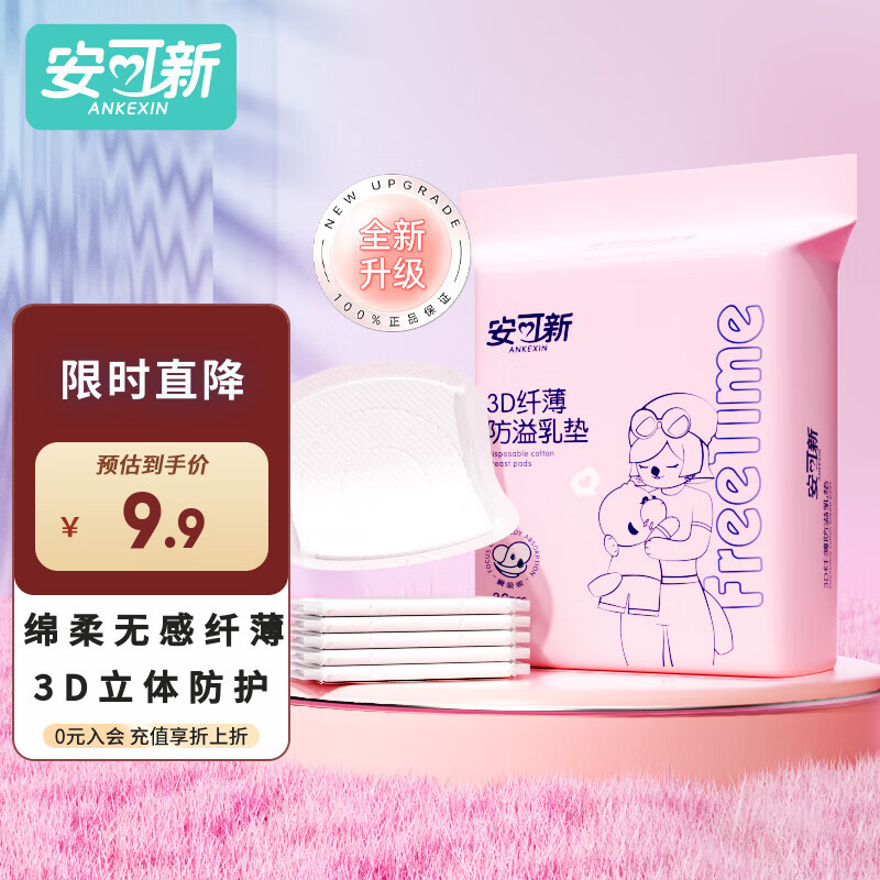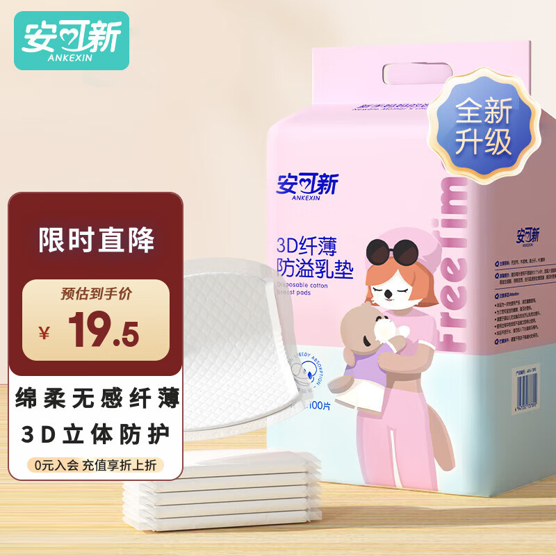 安可新防溢乳垫100片 3D纤薄升级款一次性溢奶垫隔奶垫喂奶防溢乳贴
