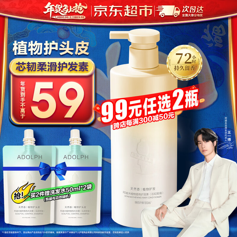 阿道夫800ml洗发水去屑止痒控油洗发水套装护发素沐浴露 800g500g 800克 护发素植萃精华护发乳液