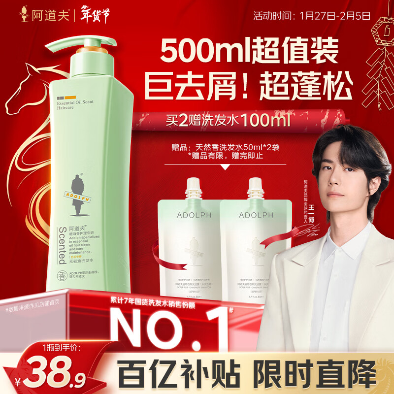阿道夫精油香护理专研洗发乳液(祛屑舒爽)500g 刮码 【临期清仓】