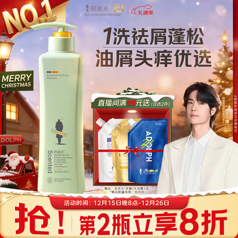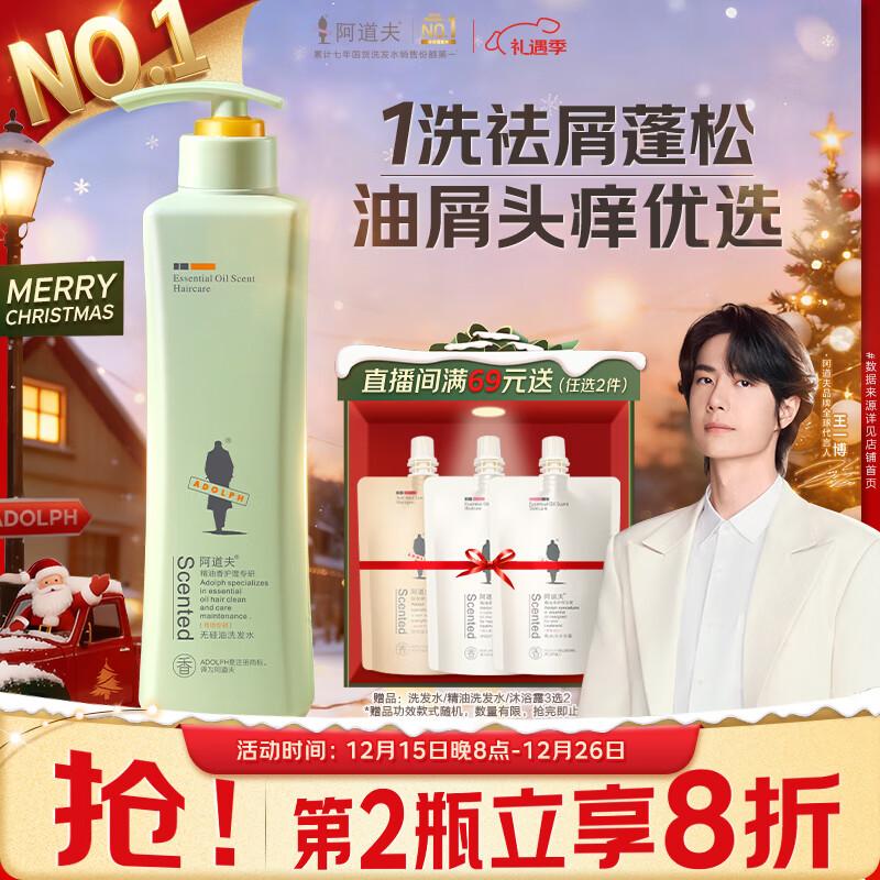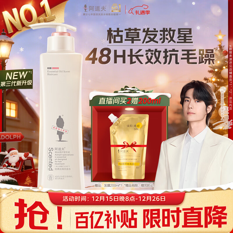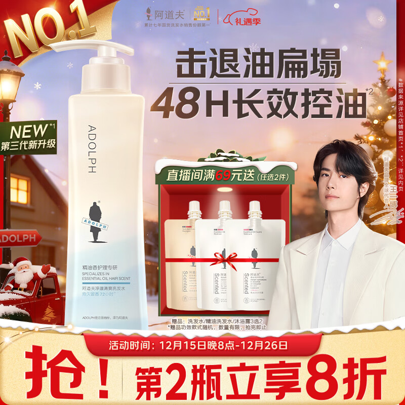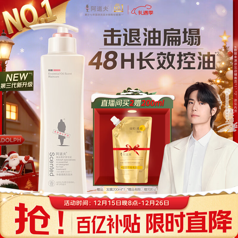 阿道夫祛屑舒爽洗发水420ml 去屑控油 精油香氛洗发露男女士热门商品