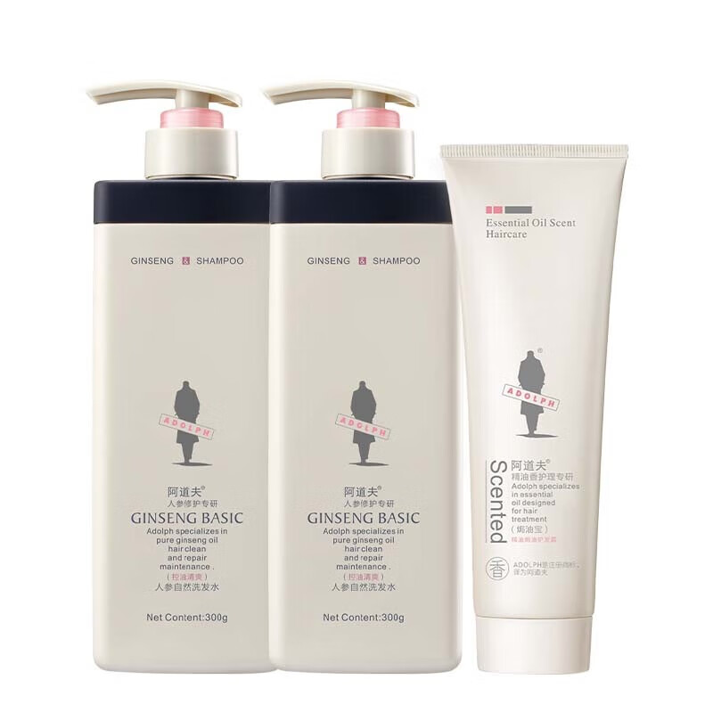 阿道夫(ADOLPH)人参控油清爽洗发水净澈蓬松修护丝滑洗发膏洗护套装 人参洗发水控油清爽300g**2+焗油宝260g