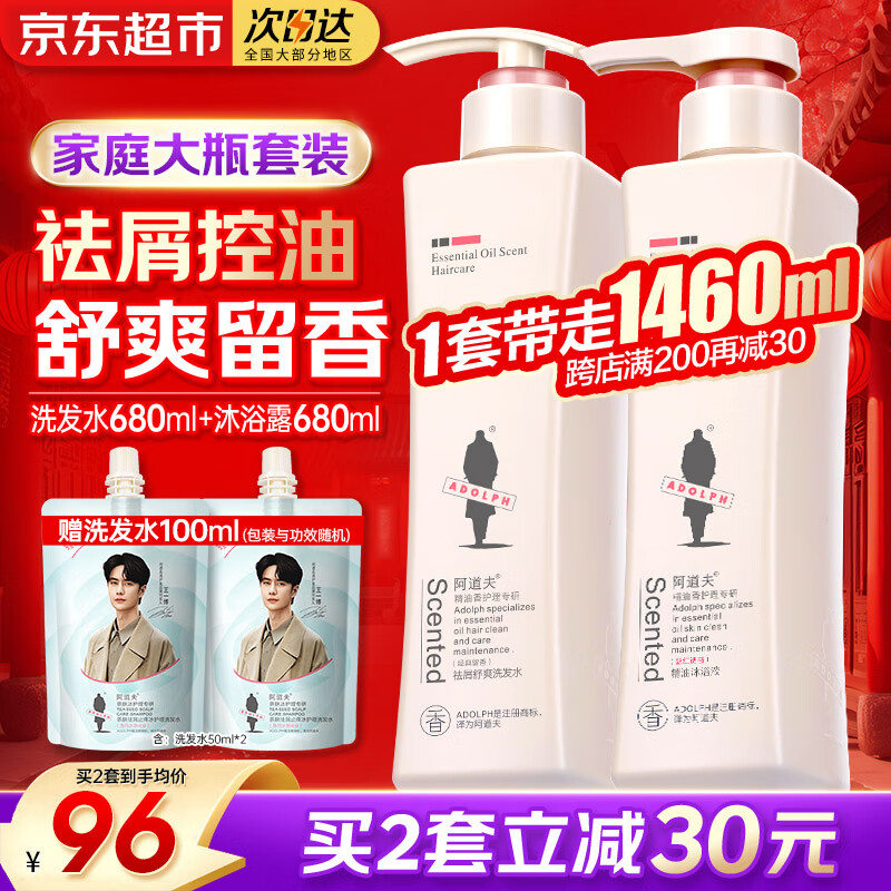 阿道夫洗发水沐浴露套装控油去屑蓬松精油香氛洗头膏沐浴液男女士正品 祛屑洗发水680ml+沐浴露680ml