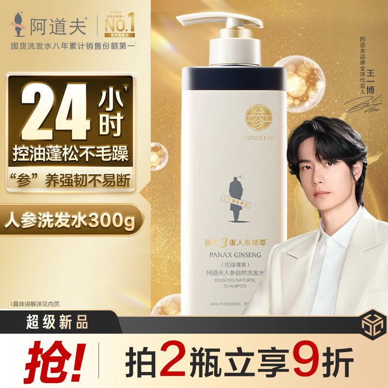 阿道夫人参控油清爽洗发水300g 控油持久蓬松洗头膏男女士专用