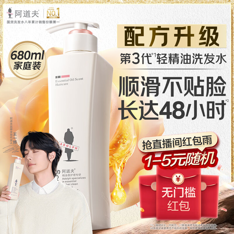 阿道夫祛屑止痒洗发水680ml 去屑控油 精油香氛洗发露洗头膏官方正品