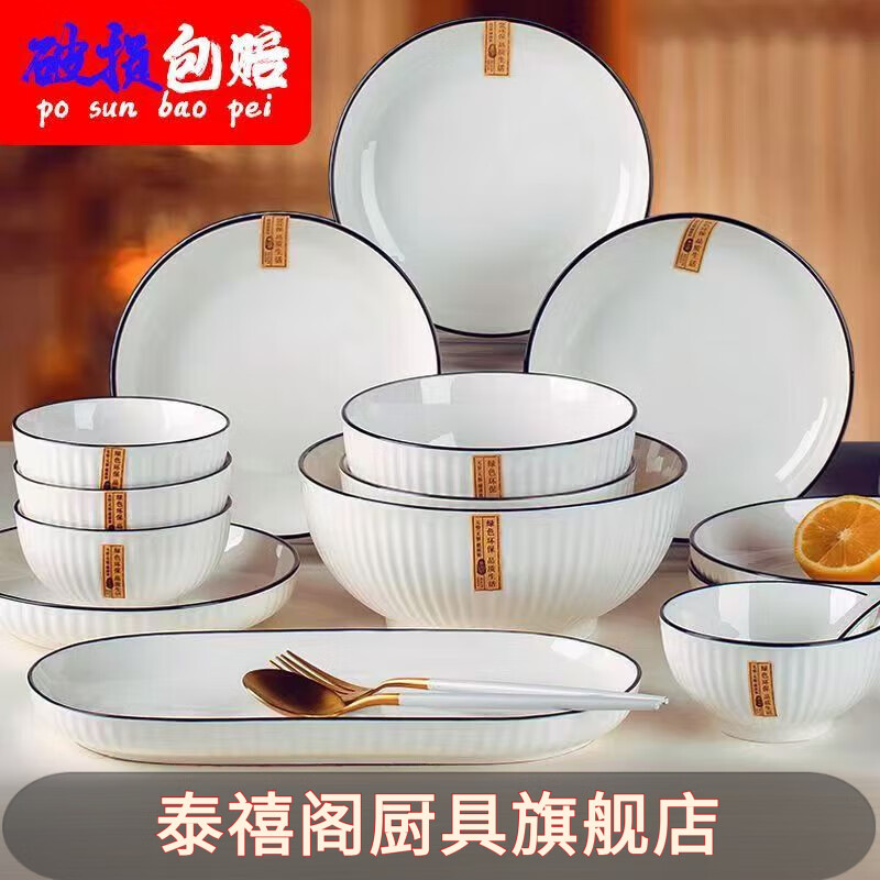 肃匠陶瓷餐具简约盘子碗套装纯白釉下彩餐具套装釉下彩碗碟套装微波炉 山田16件套(4碗4盘4勺4筷) 16头
