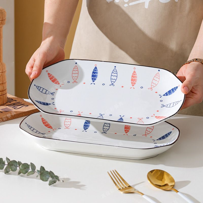 想迦喜乐多福系列陶瓷餐具2025新款高颜值餐具饭碗汤碗釉下彩陶瓷碗 2只30cm泡泡鱼鱼盘