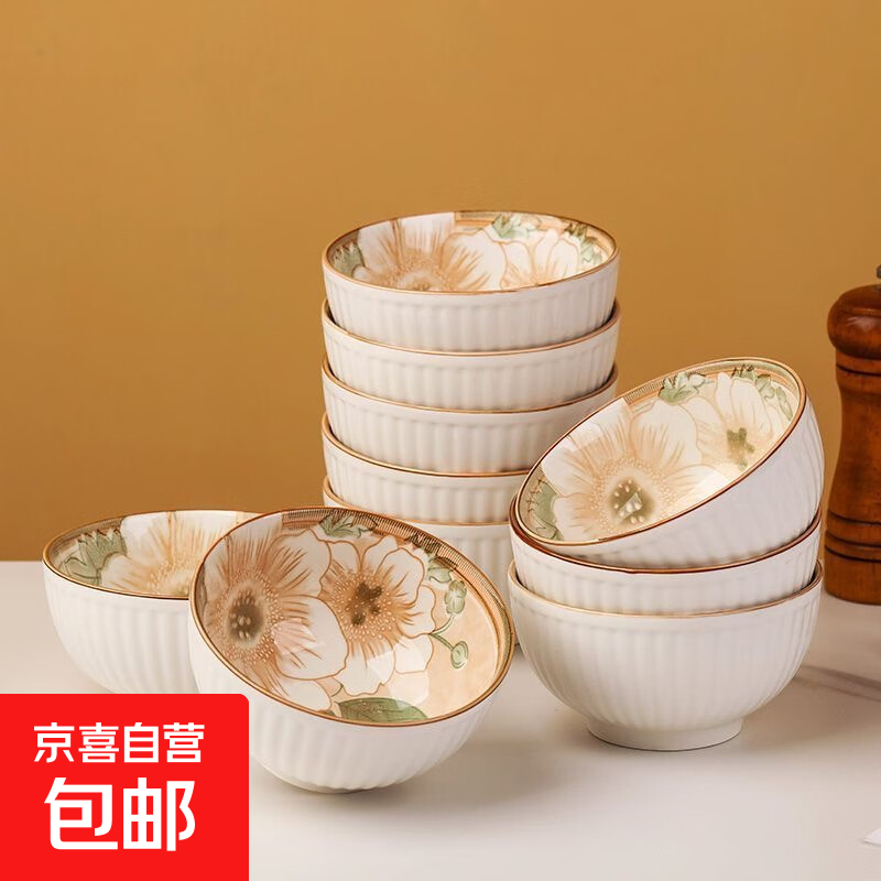 随机陶瓷餐具盲盒菜盘饭盘鱼盘烤盘家用餐具 黄金叶10件套装(4.5英寸碗6只+7英寸盘4只)