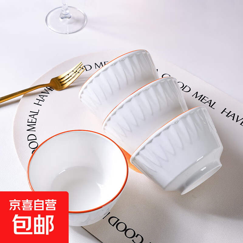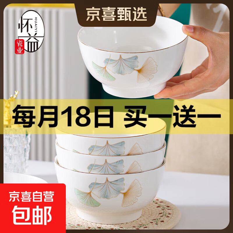 高颜值家用银杏时光米饭碗大面碗陶瓷餐具家用新骨瓷陶瓷碗 银杏时光 5英寸4个碗