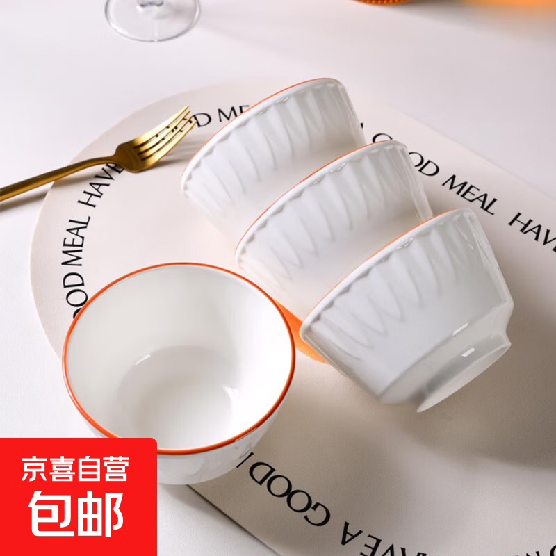 奶油风碗碟套装新款家用高颜值陶瓷餐具碗盘筷子轻奢耐高温 4.5英寸美式碗奶油色4只装 4件套