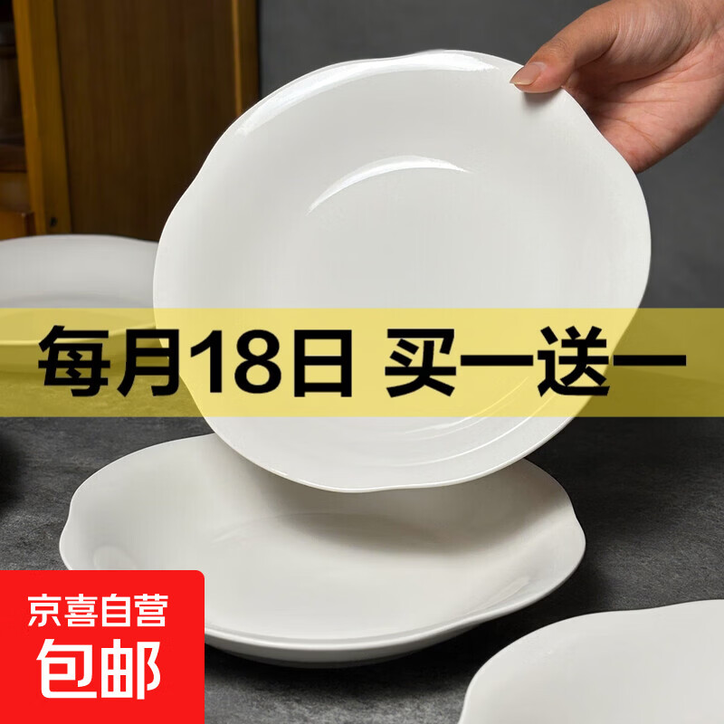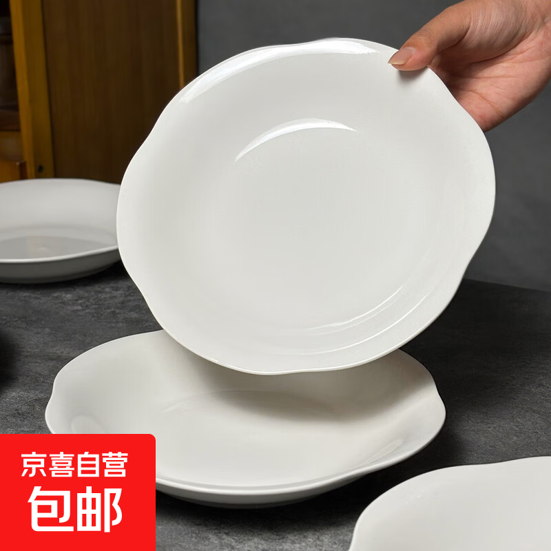荷叶花瓣盘简约陶瓷餐具盘子家用商用菜盘意面西餐摆盘 8英寸-1个装