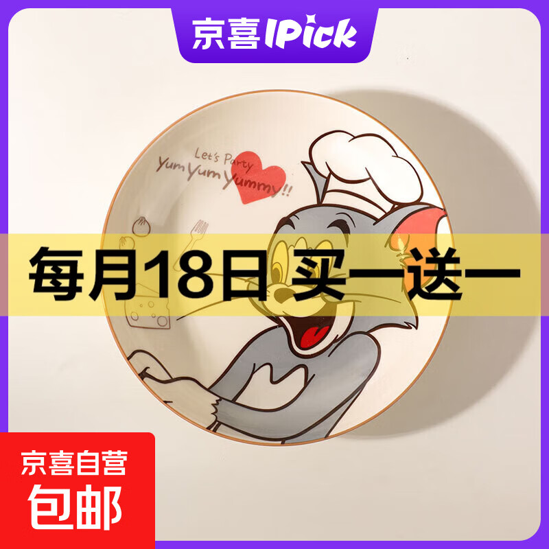 猫和老鼠盘子卡通可爱家用釉下彩陶瓷餐具儿童女生2025新款可微波 汤姆8英寸盘 1个