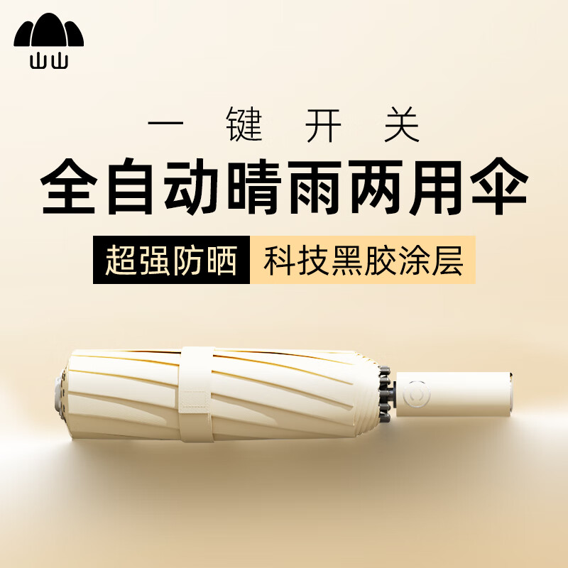 山山雨伞自动折叠伞便携太阳伞遮阳男士晴雨两用大号8骨梧桐米
