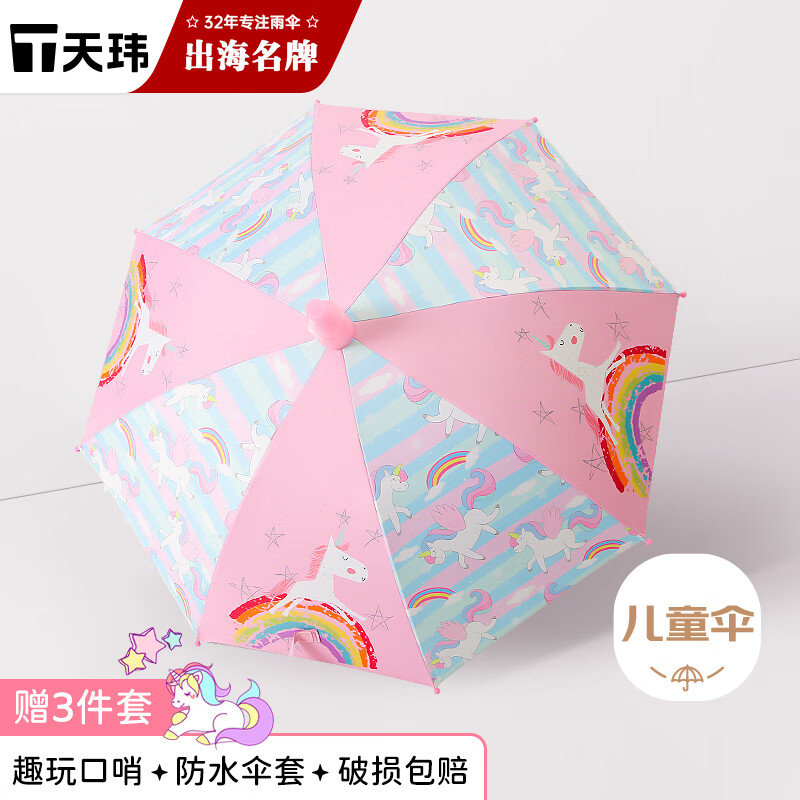 天玮伞业儿童雨伞长杆直柄伞防晒太阳伞可爱安全小学生幼儿园小角马可定制