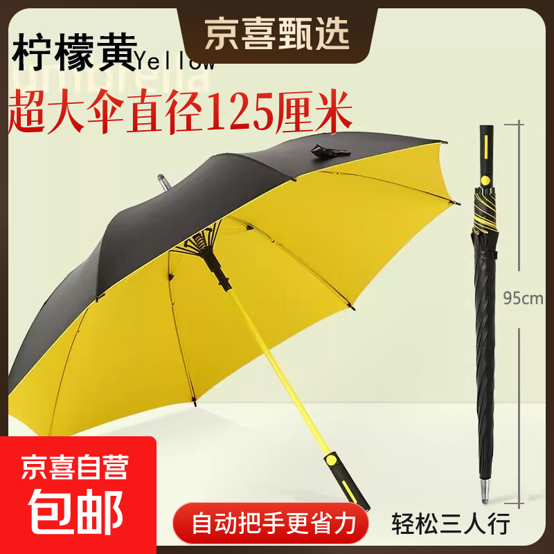 高品质雨伞自动纤维长柄超大号加固加厚结实抗暴风雨三双人男士 超大伞【直径125cm】带伞套-黄色