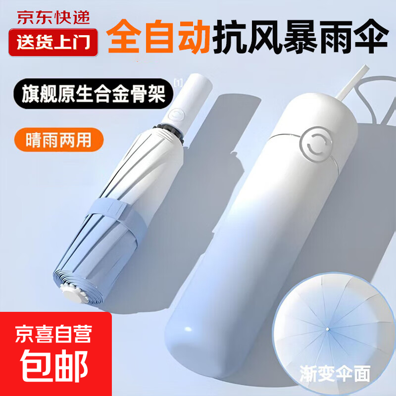 高颜值渐变女生男太阳伞防晒防紫外线全自动晴雨两用伞折叠遮阳伞 蓝色