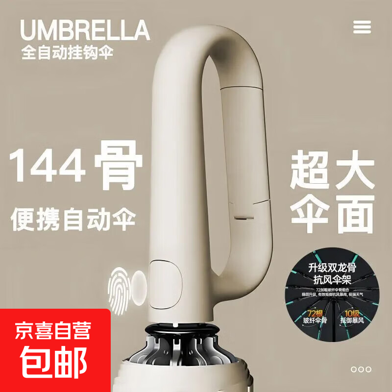 等效144骨雨伞男折叠挂钩全自动伞女学生大防晒晴雨两用太阳伞 等效144骨自动开收【白色】