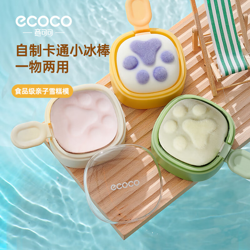 ecoco雪糕模具家用冰淇淋冰块奶酪棒硅胶食品级自制熊掌款三色装E2310