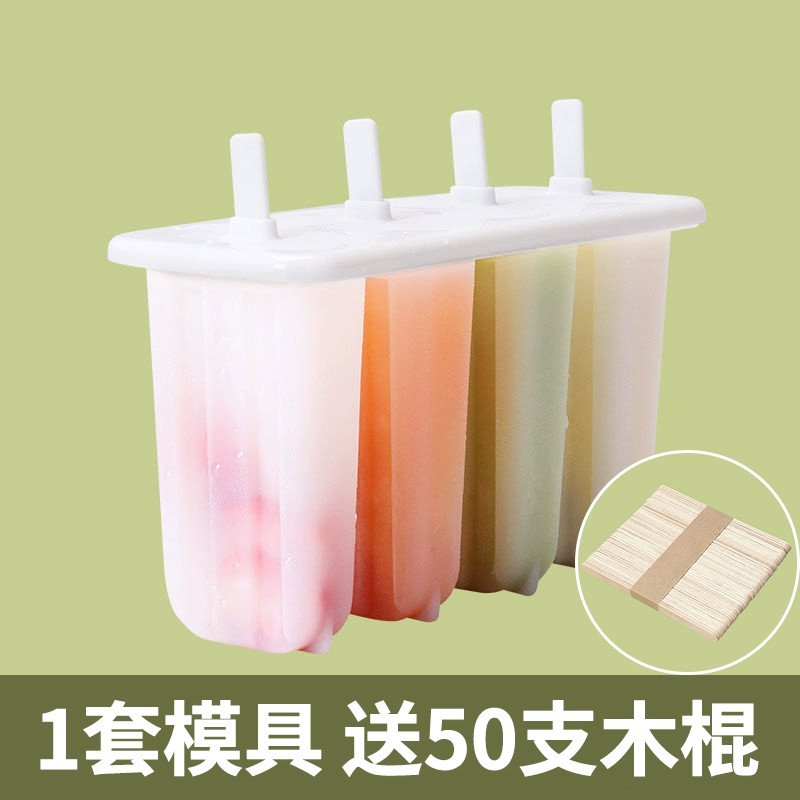 夕纪雪糕模具食品级软硅胶冰棒儿童冰淇淋冰条大容量自制冰棍冰糕磨具 1套【共4只】送50根替换棒 【配置雪糕棒/一拔就脱模】
