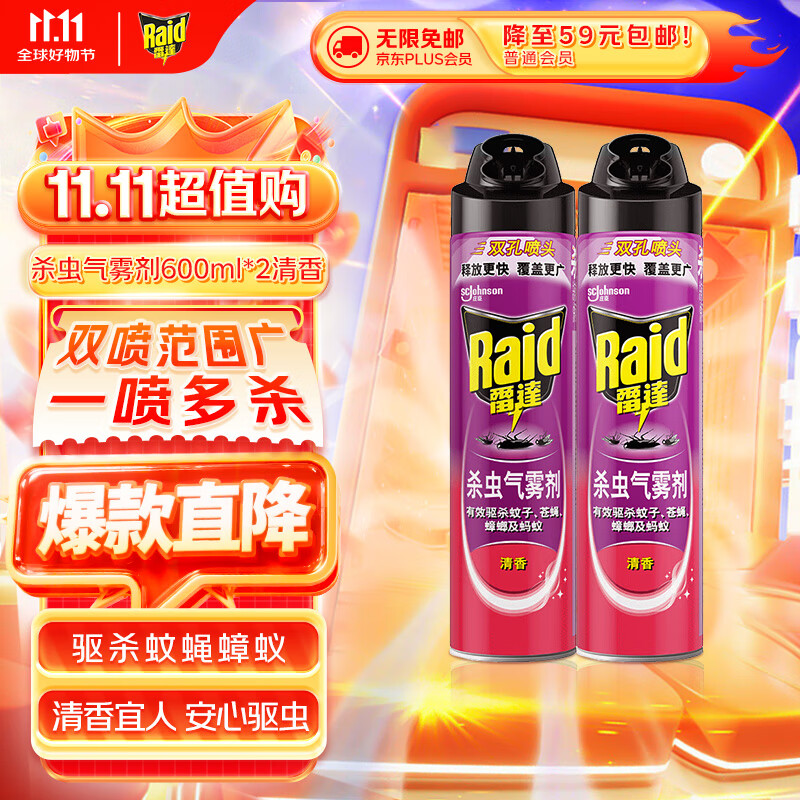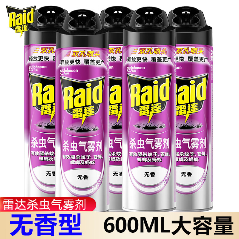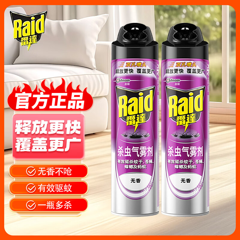 雷达(Raid)杀虫剂杀虫气雾剂喷雾600ml 家用无香型杀蟑螂小飞虫驱蚊灭蚊 【无香】雷达杀虫剂600ml*2瓶