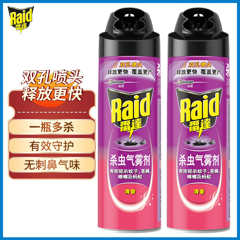 雷达(Raid) 杀虫剂喷雾 600ml*2瓶 清香型 杀蟑喷雾 杀虫气雾剂