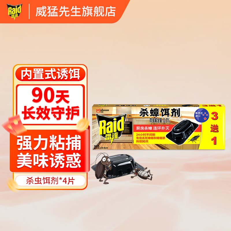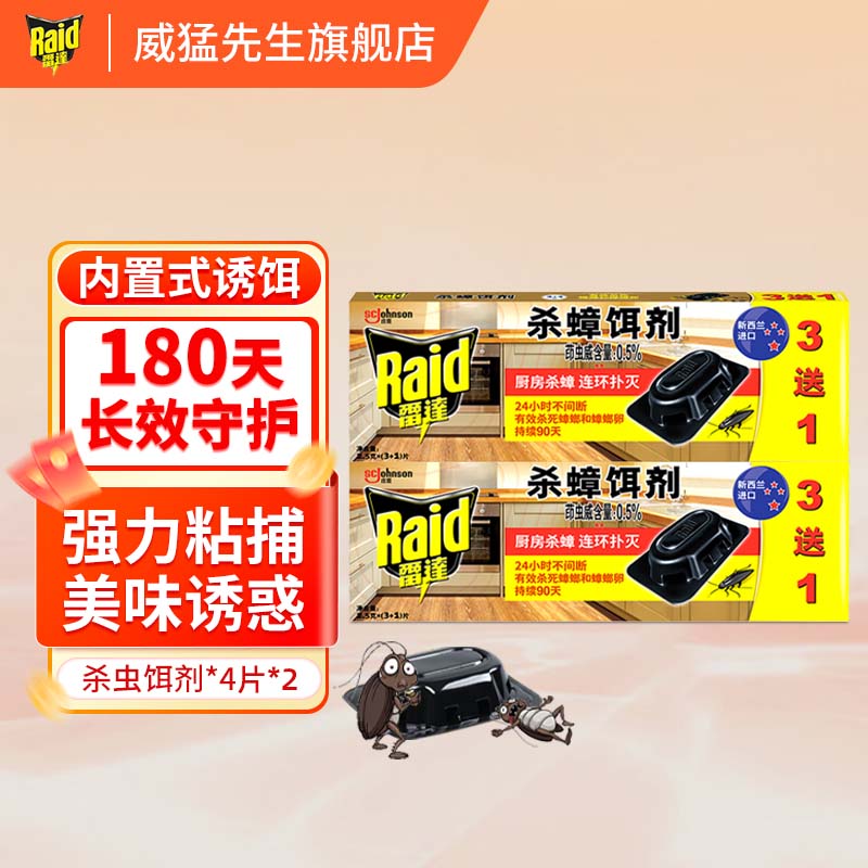 雷达(Raid)杀蟑饵剂 蟑螂药灭蟑螂杀蟑螂杀虫剂 全窝端 蟑螂屋小强克星 杀蟑饵剂 4片