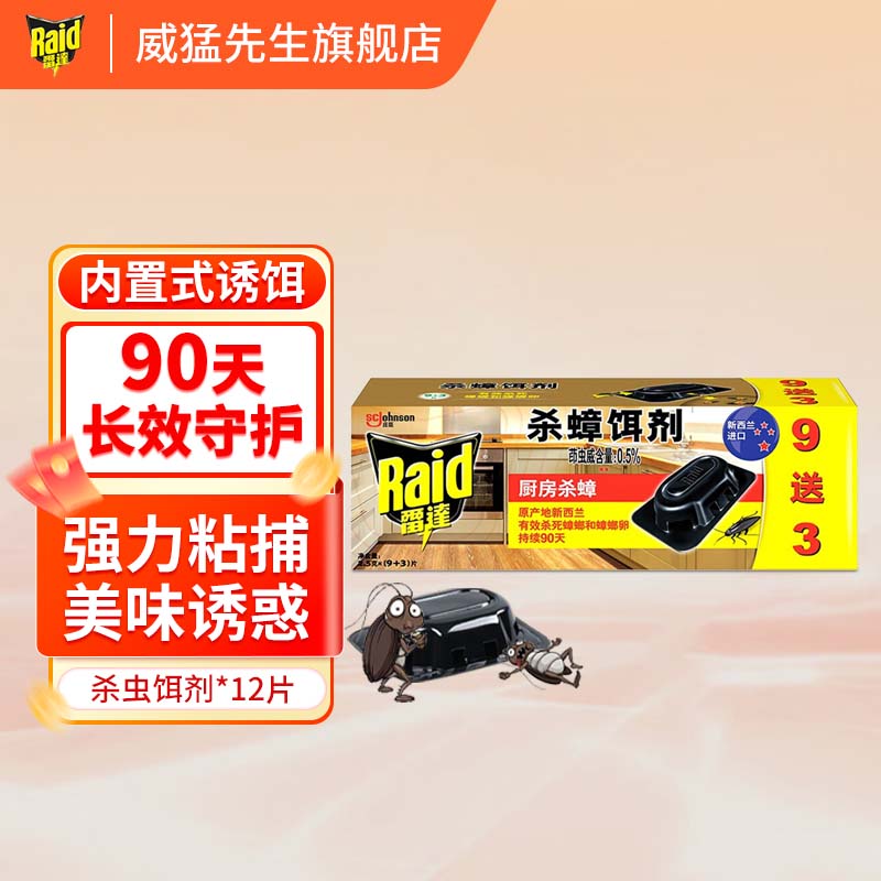 雷达(Raid)杀蟑饵剂 蟑螂药灭蟑螂杀蟑螂杀虫剂 全窝端 蟑螂屋小强克星 杀蟑饵剂 12片