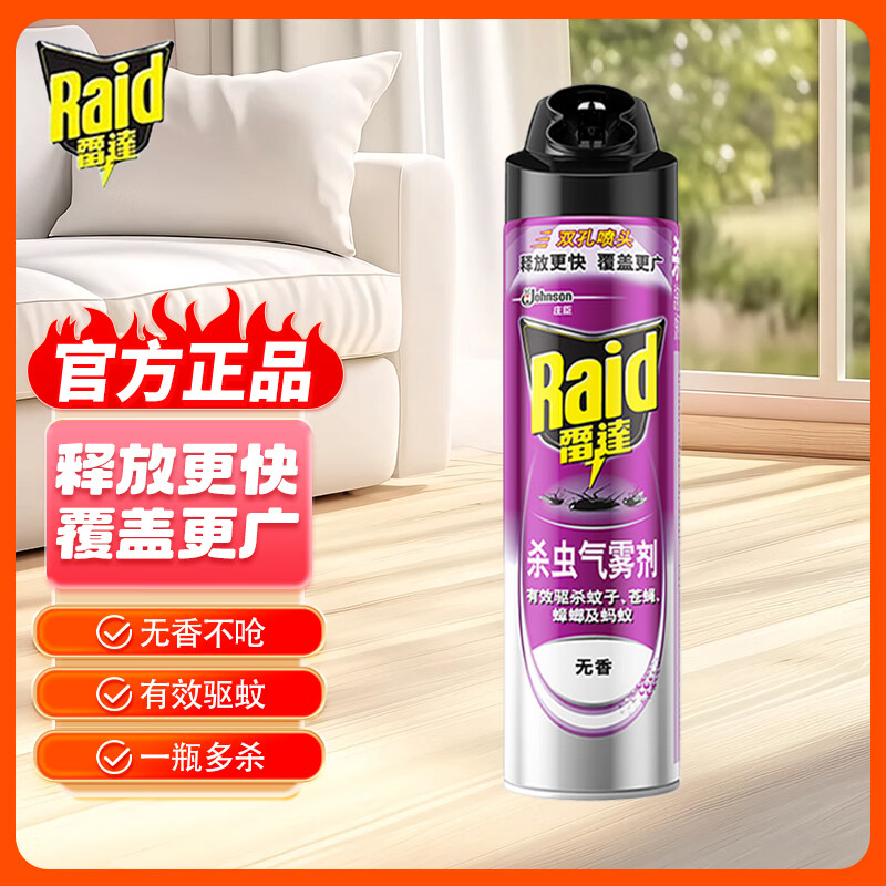雷达(Raid)杀虫剂杀虫气雾剂喷雾600ml 家用无香型杀蟑螂小飞虫驱蚊灭蚊 【无香】雷达杀虫剂550ml*1瓶