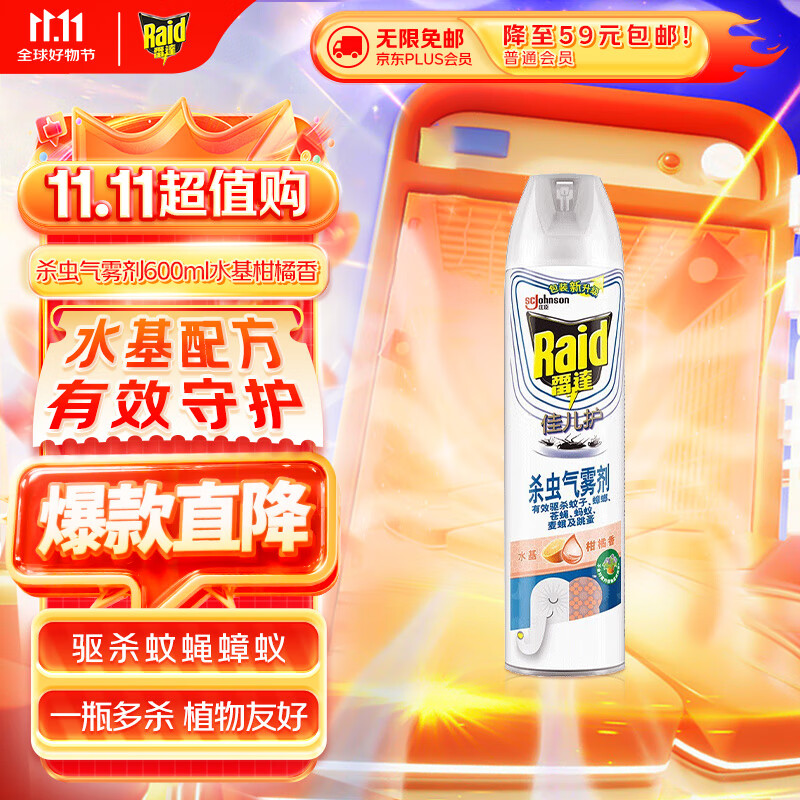 雷达(Raid)佳儿护基孔肯雅热杀虫剂喷雾600ml 柑橘香灭蟑螂喷雾妈妈宝宝可用