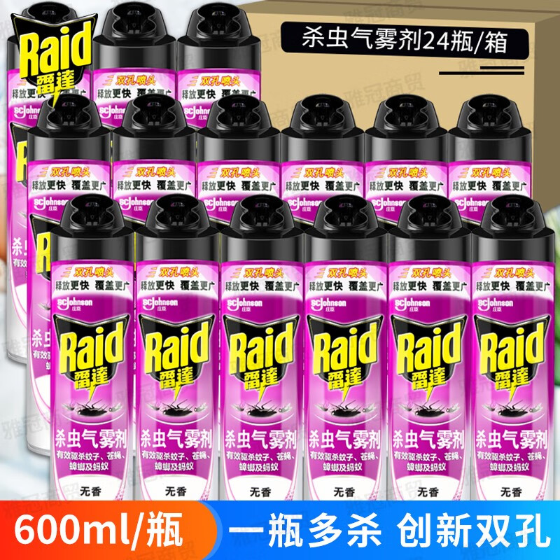 雷达(Raid)杀虫剂600ml 喷雾杀虫气雾剂防蚊飞虫驱杀苍蝇昆虫杀蟑 600ml*24瓶无味整箱
