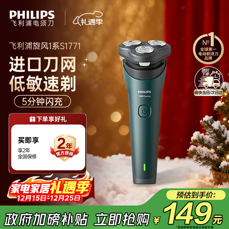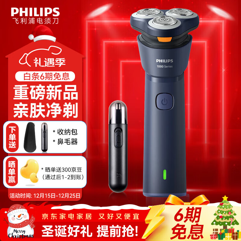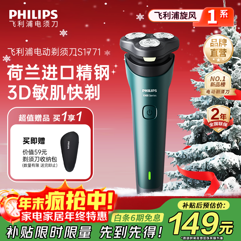 飞利浦(PHILIPS)剃须刀电动剃须刀飞利浦原装进口三刀头刮胡刀飞利浦电动剃须刀胡须刀剃胡刀官方旗舰店圣诞节礼物 【热销爆款】旋风1系 送收纳包