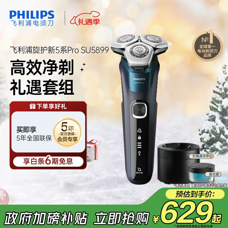 飞利浦(PHILIPS)电动剃须刀旋护新5系Pro旗舰同款微提切科技高端刮胡刀清洁套组 生日圣诞礼物送父亲男友 5831升级