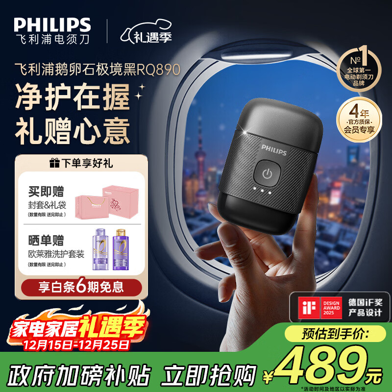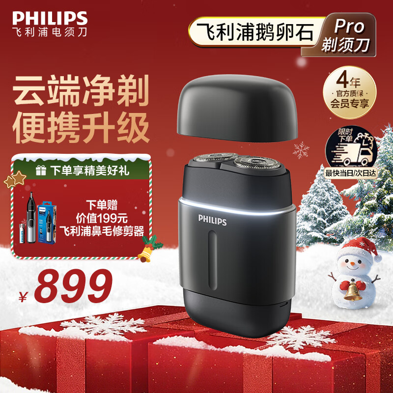 飞利浦(PHILIPS)电动剃须刀鹅卵石便携款剃须刀 0.0微米净剃黄金比例 极境黑 生日圣诞节礼物送男友父亲 国家补贴