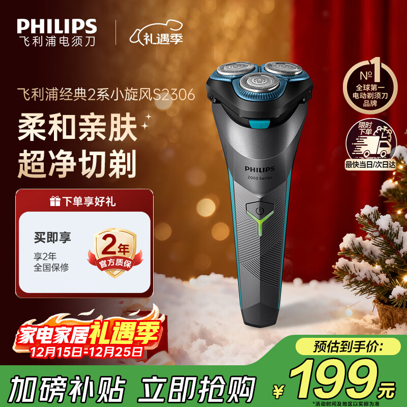 飞利浦(PHILIPS)电动剃须刀经典2系小旋风 超净切剃刮胡刀 圣诞节礼物送男友送老公 父亲生日礼物