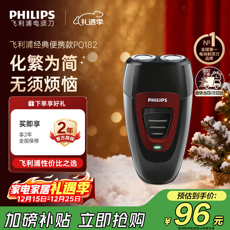 飞利浦(PHILIPS)电动剃须刀经典便携款 自研磨刀片刮胡刀 圣诞节礼物送男友送老公父亲生日礼物PQ190/16 出行必备