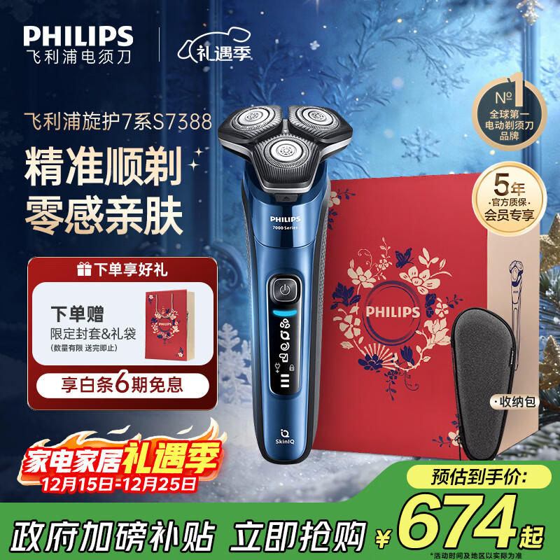 飞利浦(PHILIPS)电动剃须刀旋护7系 SkinIQ高端系列护肤级刮胡刀 生日圣诞礼物送父亲送老公送男友 国家补贴