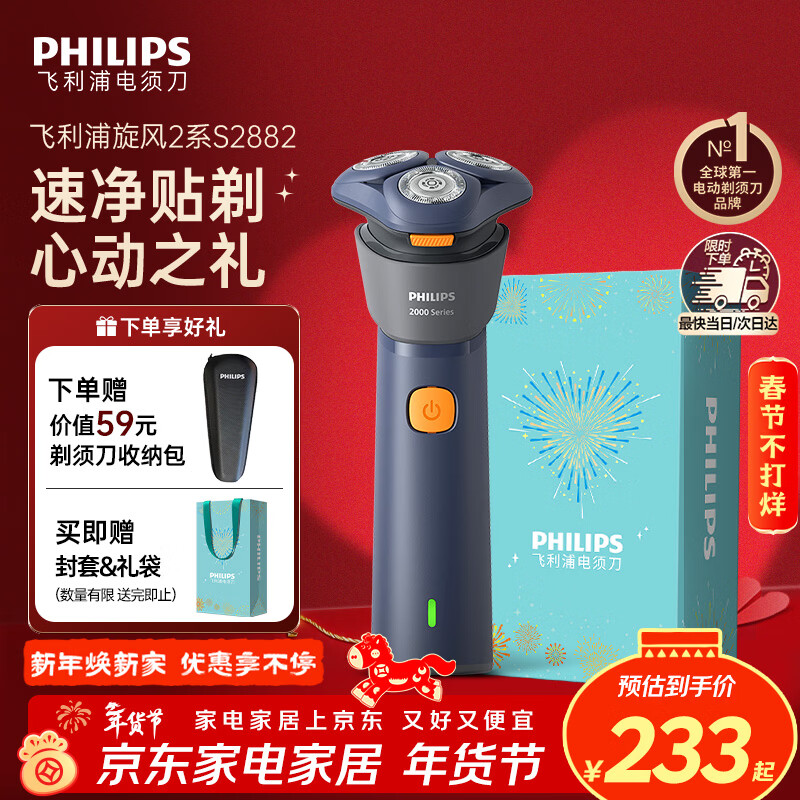 飞利浦(PHILIPS)剃须刀电动剃须刀飞利浦原装进口刮胡刀飞利浦电动剃须刀胡须刀剃胡刀官方旗舰店年会奖品年货礼物 【热销爆款】旋风1系 送收纳包