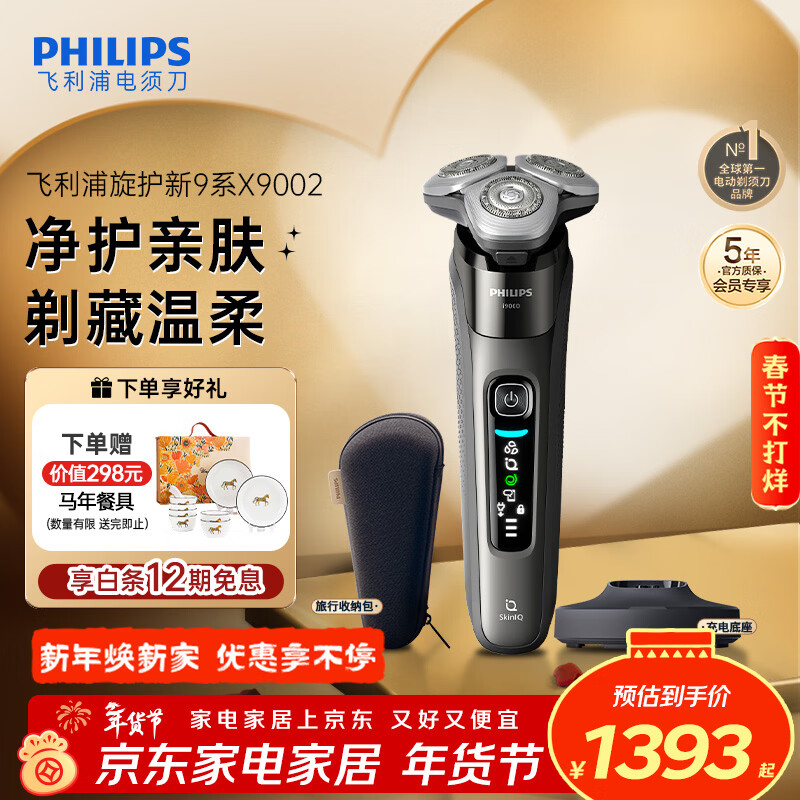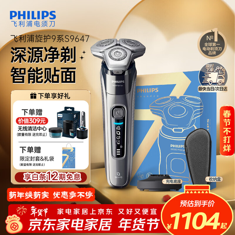 飞利浦(PHILIPS)电动剃须刀旋护9系经典版 SkinIQ高端智能刮胡刀 情人节生日礼物送男生男友老公父亲