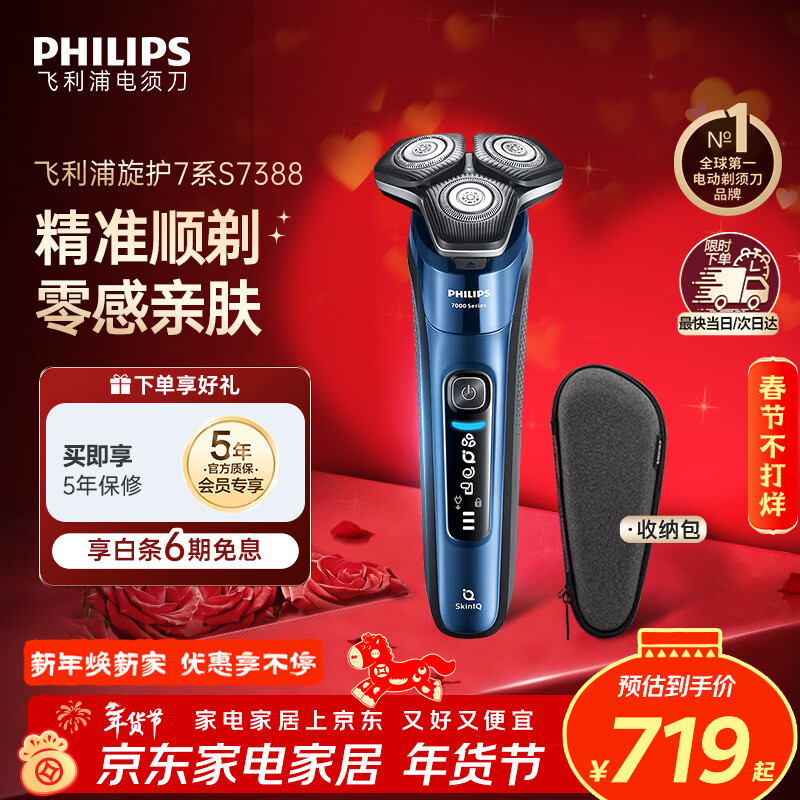 飞利浦(PHILIPS)电动剃须刀旋护7系 SkinIQ高端系列护肤级刮胡刀 情人节生日礼物送男生男友老公父亲