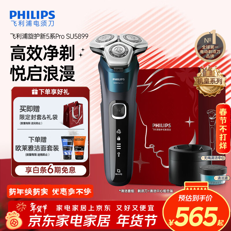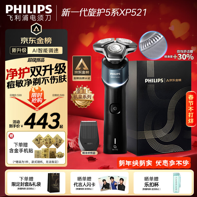 飞利浦(PHILIPS)电动剃须刀新一代旋护5系机皇系列 净护双升级AI智能痘敏肌刮胡刀年 情人节生日礼物送男生父亲
