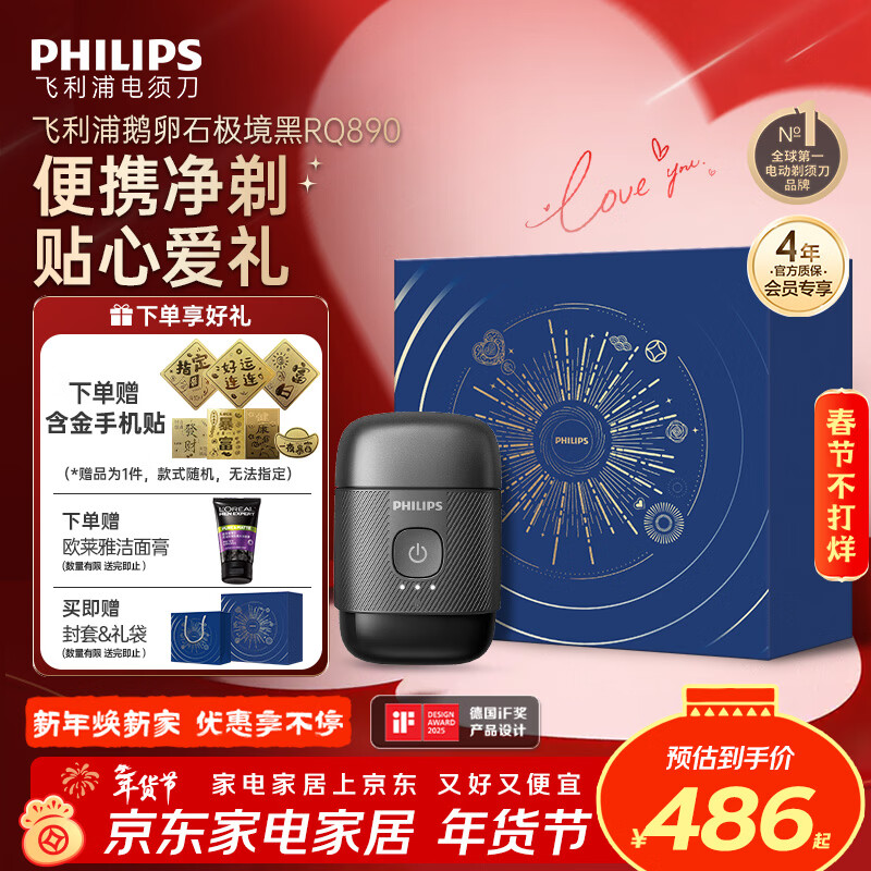 飞利浦(PHILIPS)电动剃须刀鹅卵石便携款剃须刀 0.0微米净剃黄金比例 极境黑 车载好物 情人节生日礼物送男生父亲