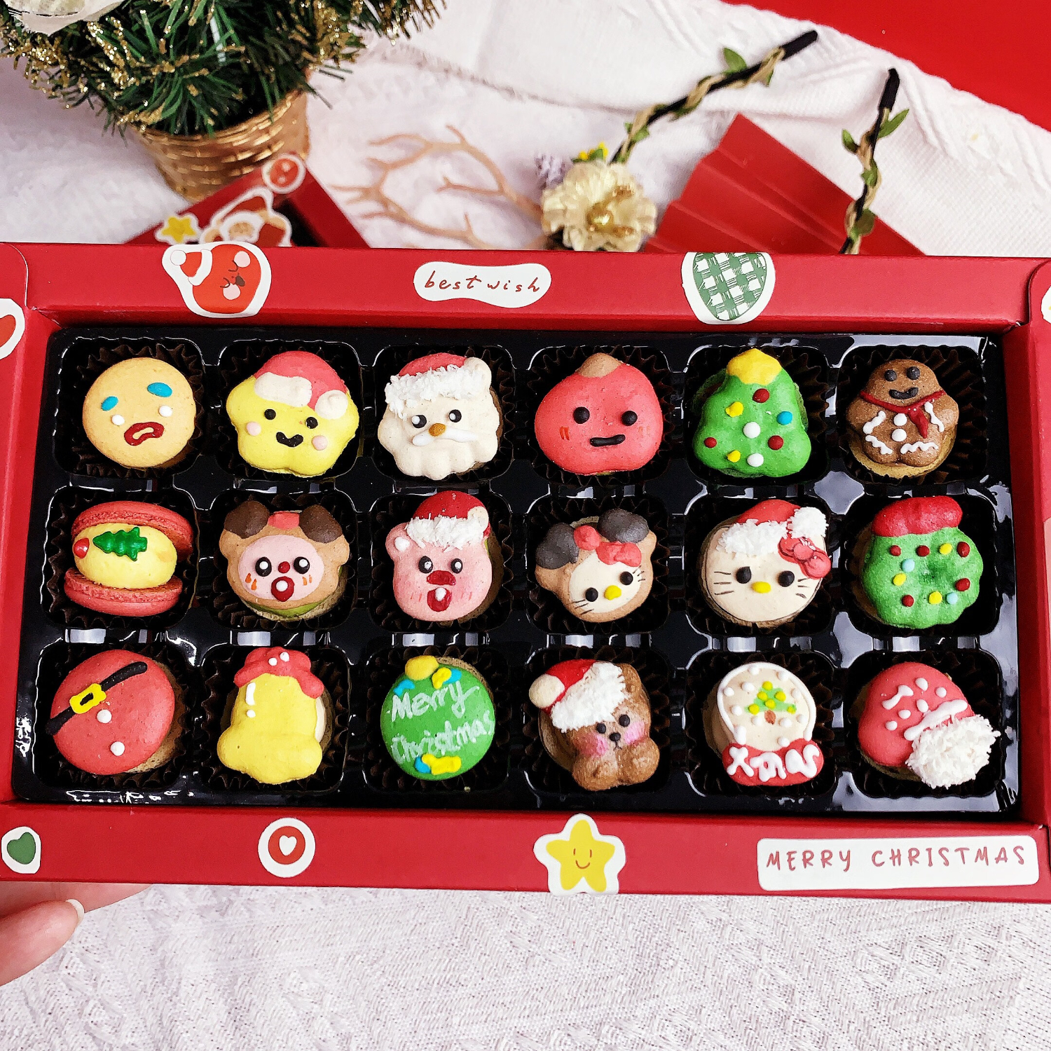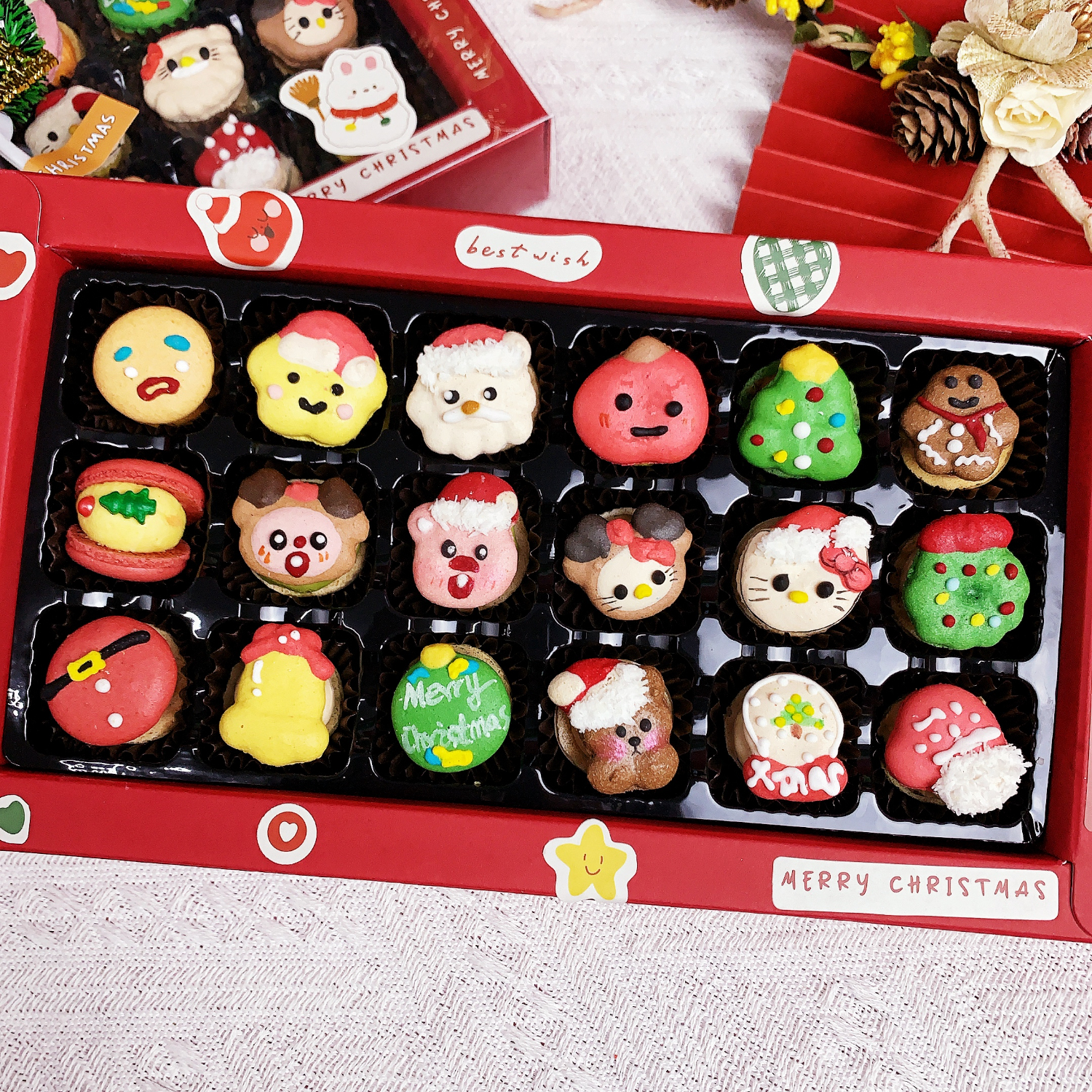 净西韩式三丽鸥贝壳胖胖花花马卡龙甜品法式甜点新年蛋糕饼干礼物礼盒 新年款kittyloppy迷你18枚马卡龙