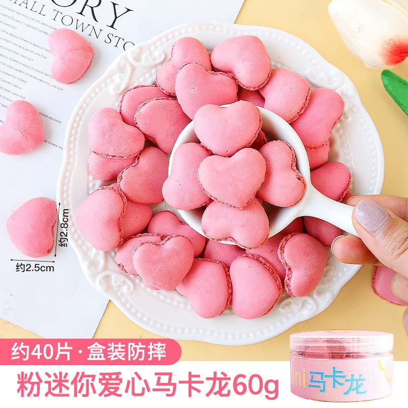 无夹心法式迷你马卡龙饼干半成品冰淇淋蛋糕装饰网红零食甜品甜点 粉色迷你爱心马卡龙60克