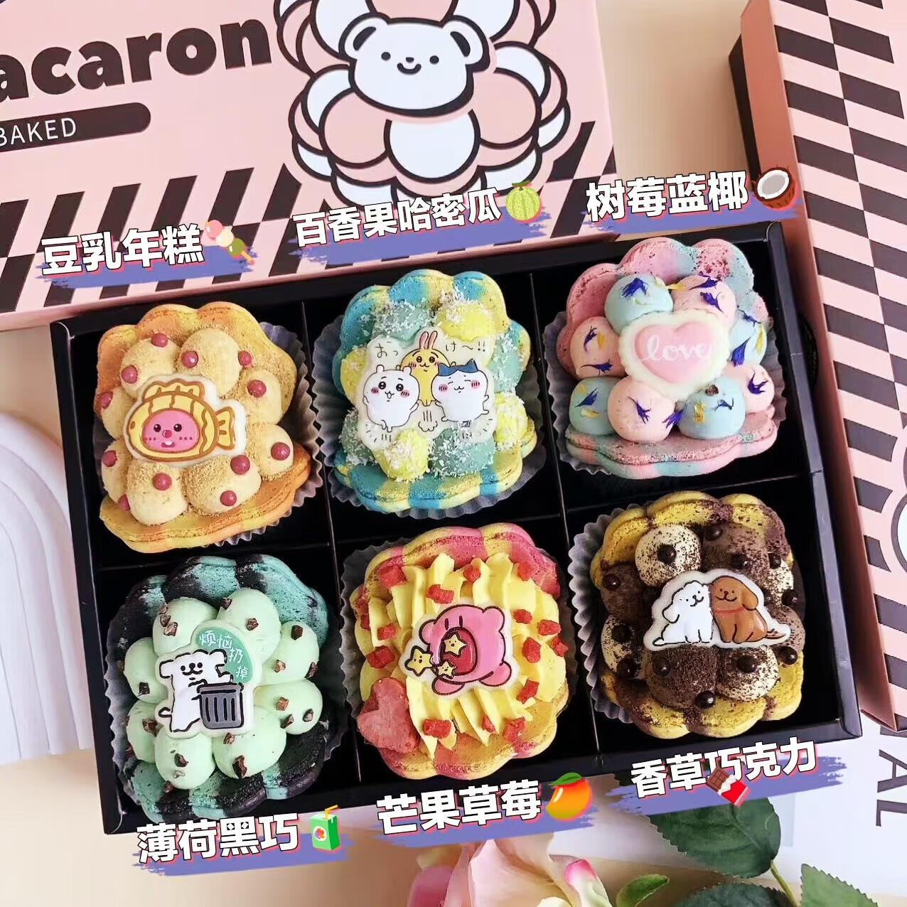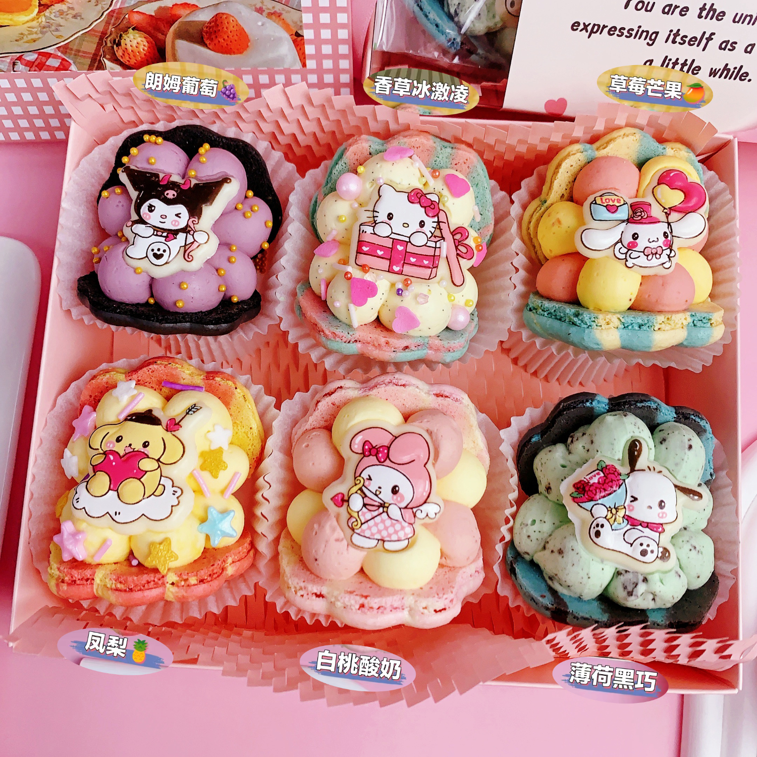 净西韩式三丽鸥贝壳胖胖花花马卡龙甜品法式甜点新年蛋糕饼干礼物礼盒 新年简配三丽鸥马卡龙6枚B款